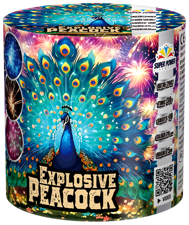 Wyrzutnia z fontanną EXPLOSIVE PEACOCK 10 strzałów kaliber 20mm
