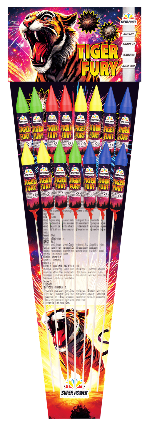 Zestaw rakiet TIGER FURY 15 szt max kaliber 23/17 mm