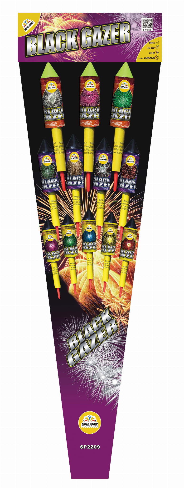 Zestaw rakiet BLACK GAZER 12 szt max kaliber 48 mm